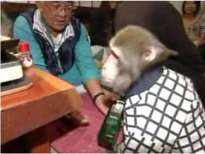 據臺灣“今日新聞”報道,日本古色古香的居酒屋,除了滿滿的人潮外,這里的服務生也是店里一大特色。老板飼養的猴子轉身一變成為店內招牌服務生,讓民眾用餐感覺大不同。小猴子穿上跟員工一樣的格子制服,拎著酒瓶幫客人倒酒,意外受到顧客歡迎,還有民眾表示,“小猴子有些動作,甚至做得比人還好!”使得居酒屋的業績暴增2成以上。