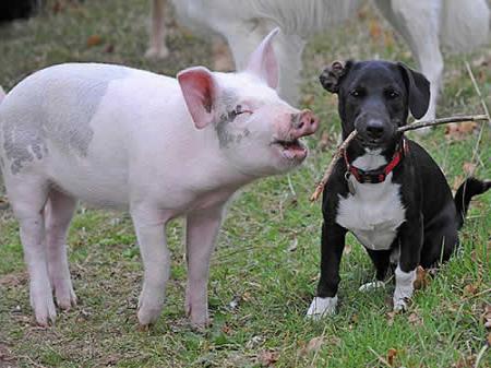 中新網(wǎng)10月24日電 英國有一只體弱多病的小豬原本要被宰殺,后來被動物庇護(hù)站人員救走。它慢慢長大后,竟把自己當(dāng)成狗,其行為舉止都跟狗沒有什么差別,并且與其它小狗成了好朋友。