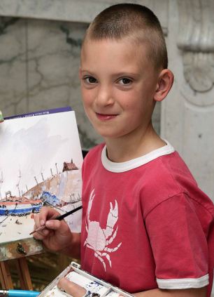 據悉,這位名叫基隆•威廉姆森(Kieron Williamson)的男童居住在英國東部小城霍爾特,他有著令其他畫家傾羨的藝術才華和繪畫技巧。當地人把他和畢加索相比,后者幼年成才并成為20世紀最受矚目的畫家。
