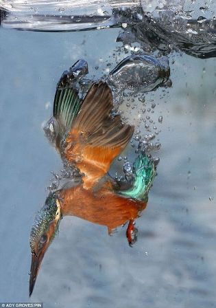 由于翠鳥的速度驚人、動作靈巧,而且水中的光線較不足,一般來說,要拍攝翠鳥捕魚的照片一點也不簡單。幸好聰明的業余攝影師艾德里‧安格羅夫斯懂得略施小計,在水池邊放了一個玻璃缸,里面放入幾條鯫魚,設法引誘翠鳥獵食,再伺機拍攝翠鳥捕魚的精彩瞬間。