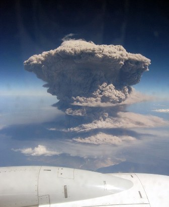 據報道,拉丁美洲蒙特塞拉特島(Montserrat)上的蘇佛里耶(Soufriere)火山在一次爆發時,噴出的煙塵和火山灰沖上了4萬英尺的高空,形成一朵巨大的蘑菇云。這一情景剛好被一架飛往圣盧西亞(St Lucia)的旅游班機上的駕駛員目擊到,他決定用廣播的形式通知機上乘客。得知消息的乘客十分興奮,乘客瑪麗.潘卡拉(Mary Jo Penkala)立即抓起相機,拍下了這一幕。