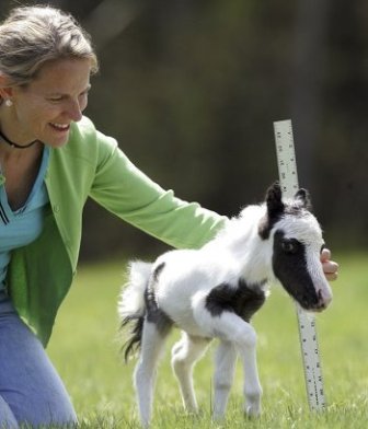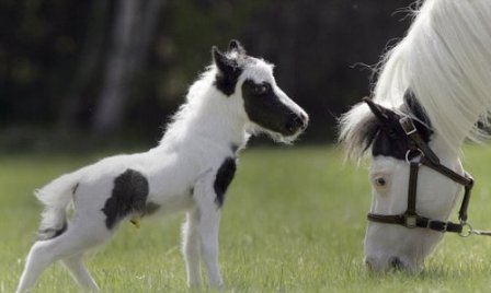 據(jù)報道,這匹擁有白毛黑斑的小馬一出生就相當?shù)男。抑挥?磅重,比之前吉尼斯世界紀錄最小的馬還輕3磅。盡管身材矮小,但它的全身比例非常均勻。
