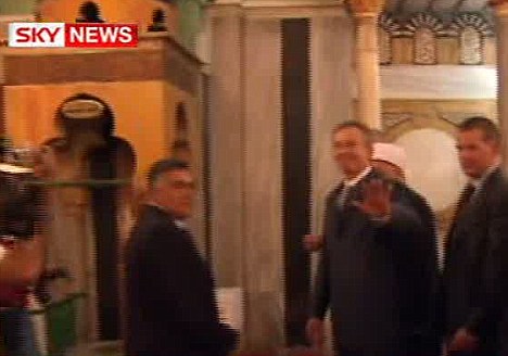 《每日郵報》介紹說,布萊爾參觀的這座清真寺名叫伊布拉赫姆清真寺,在上個世紀90年代中期,被以色列極端分子槍殺的眾多穆斯林信徒就被埋葬在這里。據了解,這名抗議的巴勒斯坦男子是伊斯蘭解放黨的支持者,他在布萊爾離開后被安全人員釋放。
