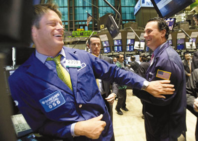 連串利好致美歐股市齊升 道瓊斯指數沖破萬點