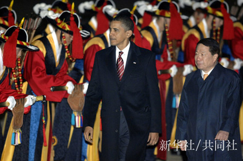 奧巴馬的訪韓行程緊湊,抵達烏山美國空軍基地之后,19日上午和李明博會談,下午巡視探訪駐韓美軍之后,隨即返美。