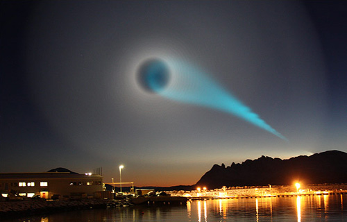 中新網(wǎng)12月11日電 美國總統(tǒng)奧巴馬赴挪威領(lǐng)取諾貝爾和平獎(jiǎng)前夕,挪威9日早晨出現(xiàn)神秘異象,一圈圈龐大的螺旋形光束籠罩整個(gè)天空,中心拖著一條藍(lán)尾巴,歷時(shí)10多分鐘才消散,數(shù)以千計(jì)的挪威人目擊事件,爭相致電氣象研究所查詢,全球頂尖科學(xué)家和軍事專家也嘖嘖稱奇,有指是俄羅斯導(dǎo)彈發(fā)射失敗,有指是北極光或外星人飛碟(UFO)。俄羅斯國防部發(fā)言人承認(rèn),前天早上試射“圖錘”(又稱布拉瓦)彈道導(dǎo)彈失敗。