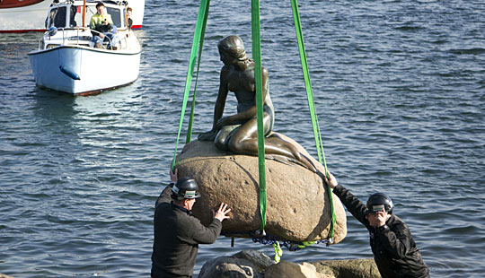 中新網3月26日電 綜合媒體報道,世界聞名的丹麥“小美人魚”銅像于周四(25日)啟程,前往中國上海參加世博展覽。這是“小美人魚”銅像建成96年來首次“邁出”國門。