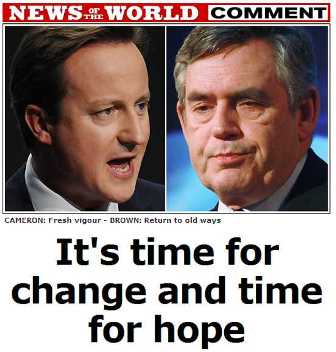 該報說,經(jīng)過深思熟慮,《世界新聞報》相信卡梅倫和他的保守黨應當被給予執(zhí)政的機會,“眼前,他們(保守黨)寄托著我們對光明、合理、安全和更有榮譽的未來。”