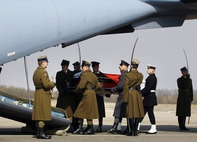 波蘭總理圖斯克、萊赫·卡欽斯基的孿生哥哥雅羅斯拉夫·卡欽斯基以及總統夫婦的獨生女瑪塔·卡欽斯基在華沙迎接總統遺體。總統遺體隨后將被送往總統府。