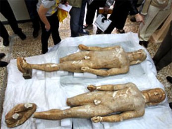 中新網5月19日電 據外電18日報道,希臘警方日前逮捕了兩名膽大包天的盜墓賊,這兩人涉嫌將盜來的一對2500年前的大理石雕像以100萬歐元的價格出售。
