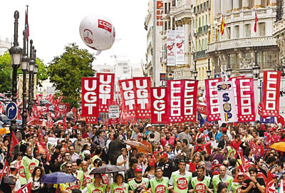 西班牙工會(huì)和管理層昨日就改革勞工市場(chǎng)的談判亦陷入僵局,勞工部長(zhǎng)承認(rèn)雙方很難在昨日最后一輪談判中達(dá)成協(xié)議。工會(huì)揚(yáng)言如工人利益受損,將發(fā)動(dòng)大罷工。