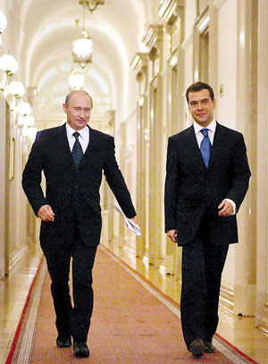 普京在自己的第二任總統任期結束時欽點梅德韋杰夫作接班人。作為俄羅斯最受歡迎的政治家,普京可望在2012年再度競選總統,且如果成功,他可以一直執政至2024年。