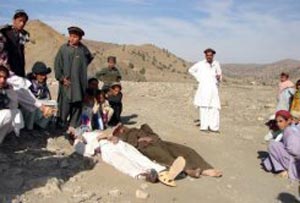 據泰國《曼谷郵報》24日報道,當日,5名男子被發現橫尸米蘭沙阿以南30公里的Kamsarobi村的一條小路旁。死者滿身都是彈孔,死狀凄慘令人震驚。米蘭沙阿是巴基斯坦西北部北瓦濟里斯坦部落區的一個城鎮,當地警官梅赫·沙赫透露:“23日晚,塔利班武裝分子指責5名死者協助美軍無人襲擊塔利班武裝,遂將他們殘忍殺害。在尸體上我們找到一張字條,上面寫著‘這些人正在監視塔利班的動向。任何一個做這樣事情的人都會是這個下場。’”