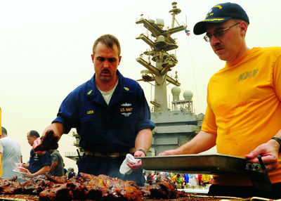 “斯坦尼斯”號之所以能在眾多航母中脫穎而出,與艦艇上“伙頭軍”的不懈努力分不開。托德·米爾斯是艦上的高級廚藝專家,領(lǐng)導(dǎo)著57名烹飪專家和80名餐廳服務(wù)員。在介紹成功經(jīng)驗(yàn)時,米爾斯說,“有三個條件:高品質(zhì)的食材、確保廚房干凈和安全,如果你能確保這三點(diǎn),那么就能贏得海軍廚藝大獎”。海軍士官長、艦上餐飲官內(nèi)斯特·法度對此卻有著另一番看法,他說:“主要還是人的因素,我們勝過其他航母的秘訣就是靠態(tài)度、服務(wù)和菜的花色。”