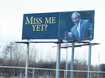 布什現身廣告牌諷奧巴馬 設計臺詞:想我了嗎(圖)