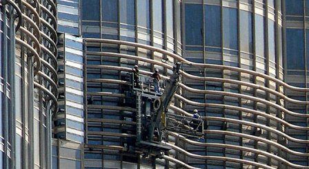 中新網1月6日電 被一根繩子吊在窗外,冒著生命危險為摩天大樓擦洗窗戶的擦窗工人可謂是一份需要勇氣的職業,而又有誰能夠想象為“世界第一高塔”迪拜哈利法塔擦洗窗戶的工人該是多么“偉大和勇敢”。