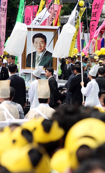 在景福宮遺體告別儀式結(jié)束后于中午12時30分出發(fā)的盧武鉉的靈車,經(jīng)由東十字閣、世宗路和太平路,于下午1時20分抵達(dá)首爾廣場。
