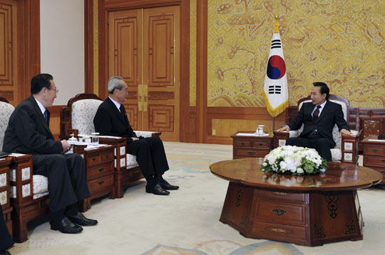 中新網(wǎng)8月23日電 綜合韓聯(lián)社等媒體報(bào)道,韓國(guó)總統(tǒng)李明博23日上午在青瓦臺(tái)接見(jiàn)了前來(lái)吊唁韓國(guó)前總統(tǒng)金大中的朝鮮吊唁團(tuán)。