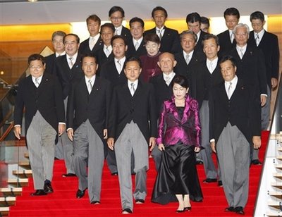 中新網9月17日電 據香港《文匯報》報道,日本新任首相鳩山由紀夫16日公布其內閣成員名單,分別為:金融兼郵政改革大臣─龜井靜香(72歲,國民新黨黨魁)、副首相兼國家戰(zhàn)略大臣─菅直人(62歲)、首相─鳩山由紀夫(62歲) 、少子化兼消費者行政大臣─福島瑞穗(53歲,社民黨黨魁)、外務大臣─岡田克也(56歲)、國家公安委員長─中井洽(67歲)、國土交通大臣─前原誠司(47歲)、財務大臣─藤井裕久(77歲)、內閣官房長官─平野博文(60歲)、防衛(wèi)大臣─北澤俊美(71歲)、文部科學大臣─川端達夫(64歲)、法務大臣─千葉景子(61歲)、農林水產大臣─赤松廣隆(61歲)、經濟產業(yè)大臣─直山鳥 正行(63歲)、總務大臣─原口一博(50歲)、行政刷新會議大臣─仙谷由人(63歲)、環(huán)境大臣─小澤銳仁(55歲)、厚生勞動大臣─長妻昭(49歲) 。