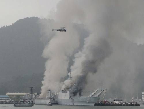 《星洲日報》報道,該軍艦從早上6時25分開始燃燒,直到下午3時許火勢才被控制下來。