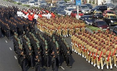 中新網(wǎng)11月26日電 綜合外電報(bào)道,25日,印度警察列隊(duì)走過(guò)孟買幾處標(biāo)志性建筑,并向公眾展示了新式裝甲車和武器,以紀(jì)念孟買恐怖襲擊事件一周年。