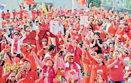 據悉,泰國紅衫軍今天已在曼谷聚集超過10萬人。核心領袖納塔兀(Natthawut Saikua)指出,即使政府宣布緊急狀態也不能制止支持者示威。