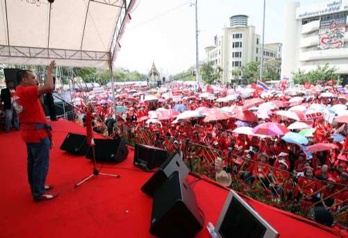 從十四日上午十時開始,素蓬、乍都蓬等紅衫軍領導人輪番登場發表演講,不時贏得臺下紅衫軍的陣陣掌聲與喝彩。