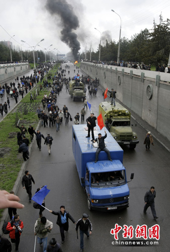 中新網4月8日電 當地時間4月6日開始,數千名吉爾吉斯斯坦反對派示威者在首都比什凱克市中心集會游行,并與防暴警察發生沖突,逐漸演變成騷亂,造成數百人傷亡。反對派扣押政府高官,占領部分政府機構以及國家電視臺,并稱最終目的是要總統下臺,奪取國家政權。吉總統巴基耶夫下令全國進入緊急狀態,并宣布實行宵禁。