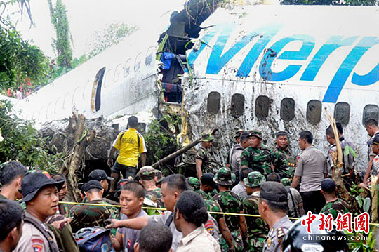 客機于當?shù)貢r間昨早上10時50分,在西巴布亞省馬諾夸里市林達尼機場降落后,滑出跑道約700米沖入樹林,機頭插入跑道盡頭一條小河。有乘客透露,降落時一切正常,但飛機沒有煞停,不斷向前沖,直至兩次撞到東西才停下。