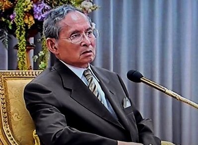 據報道,普密蓬在醫院住院七個多月,他在醫院發表講話,指法官應建立榜樣,展示官員有能力維護和平。泰國總理阿披實近期備受批評,指其未能平息“紅衫軍”示威,恢復國家秩序。普密蓬沒有直接談論政府與“紅衫軍”抗議者之間的僵局,而是要求法官們在履行職責時樹立榜樣。