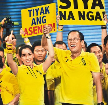 菲律賓已故前總統阿基諾夫人的兒子阿基諾三世(右)