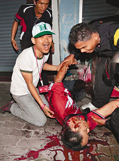 納塔武對記者說:“阿披實已為內(nèi)戰(zhàn)揭開序幕了。我們緊急要求政府撤軍,停止一切暴力行為。如果阿披實不同意停火,我不知道我們能否活過今晚。我們希望阿披實不想要戰(zhàn)爭。”