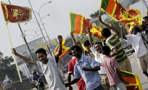 斯里蘭卡民眾18日揮舞國旗,表示慶祝。