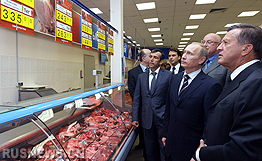 普京突訪莫斯科食品連鎖超市 不滿高價豬肉(圖)