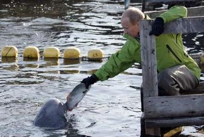除了展現(xiàn)男子氣概,普京近年亦用心營造柔情一面。俄政府發(fā)聲明表示,普京7月31日到了俄羅斯遠(yuǎn)東地區(qū),穿起潛水衣,在太平洋的契卡洛夫島為一條白鯨裝上衛(wèi)星追蹤器。這是一個(gè)白鯨遷徙模式研究的一部分。普京當(dāng)時(shí)問:“她不會(huì)咬人吧?”他其后更幫手喂飼其他白鯨。普京當(dāng)日又到700公里外的哈巴羅夫斯克市,出席一條新天然氣輸氣管的啟用儀式。