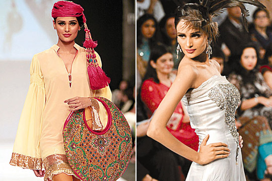 模特兒穿上當(dāng)?shù)卦O(shè)計(jì)師力作逐一亮相,當(dāng)中包括巴基斯坦傳統(tǒng)特色衣裙,配以閃耀的衣飾;又或戴上罩袍式頭罩,同時(shí)展露雙肩及臂上的紋身圖案;男的穿上鑲滿珠片的上衣配以短褲。模特兒袒胸露臂、展露美腿,有設(shè)計(jì)師甚至加入巴國混亂局勢(shì)為時(shí)裝設(shè)計(jì)的元素。