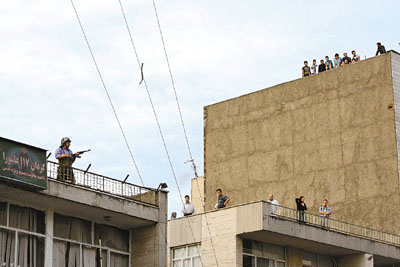 中新網6月17日電 伊朗總統選舉觸發的示威浪潮仍未平息。據香港《文匯報》報道,前日示威者試圖闖進德黑蘭一個民兵哨站放火,西方媒體稱有便衣槍手在樓頂向人群開槍,結果7死多傷。伊朗情報機構則拘捕76人,包括前總統哈塔米的兩名得力助手,指責他們制造動亂。另外,伊朗文化部16日宣布,所有在伊外國記者的記者證暫時作廢,嚴禁他們外出采訪或報道。
