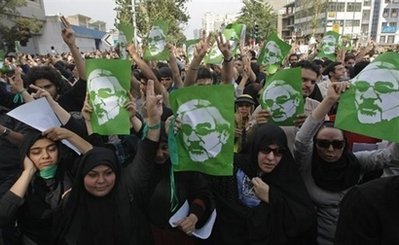 18日,幾萬名佩戴綠色標志物的穆薩維支持者,高呼口號向德黑蘭一個主要廣場出發,參加一年一度的“圣城(耶路撒冷)日”集會。“圣城(耶路撒冷)日”是伊朗每年舉行的反對以色列、支持巴勒斯坦的大會。伊朗總統內賈德將在此次大會上發表演講。