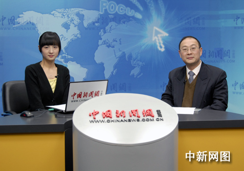 國際問題專家金燦榮(右)做客中新網