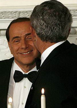 貝盧斯科尼和布什在白宮晚宴上親密互碰面頰(圖)