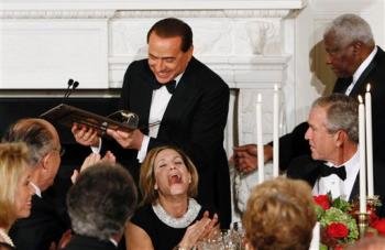 中新網(wǎng)10月16日電 據(jù)美聯(lián)社報(bào)道,意大利總理貝盧斯科尼13日晚上在白宮做客時(shí)鬧出笑話,他不小心撞壞演講臺,他不得不手扶演講臺完成祝酒辭,讓在座的人士大笑。