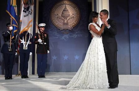 奧巴馬的裝束為燕尾服配領結,第一夫人米歇爾(Michelle)則身穿出自設計師吳季剛(Jason Wu)之手的露肩晚禮服,禮服帶有長長的裙擺。兩人在參加完當天的儀式和慶典后就一直穿梭忙碌于各種社交活動。
