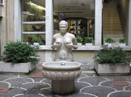 前些天,圓明園兩個青銅獸首的拍賣引起軒然大波,然而很多人不知道,獸首的原作者意大利人郎世寧,卻是精于女性裸體噴泉設計的人。像這樣充分展現人體的情趣噴泉,在人口非常稠密的商業區也能見到。因為曾經有過那樣一個黑暗的對人性壓抑的中世紀,于是文藝復興以來,歐洲人對于身體的贊美和歌頌,處處都散發著返璞歸真的氣息。在人體藝術方面,歐洲人似乎很少去追究色情和藝術的差別,或許在他們眼里,只要能夠使城市變得更加具有情趣的東西,就一定是美和藝術的吧。(張樾 )