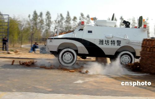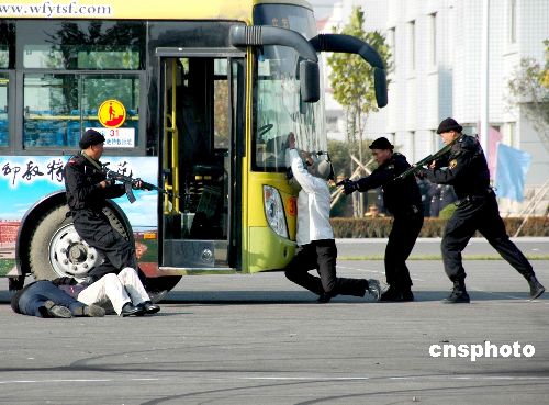 11月12日,山東濰坊公安機關苦練基本功暨反恐演練匯報表演在該市警官培訓基地舉行,內容包括隊列分列式表演、警務各項技能表演、多警種聯合反恐作戰演練等三項內容。中新社發 田源 攝