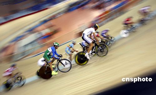 十二月七日,“好運北京”2007-2008國際自盟場地自行車世界杯賽在北京老山自行車館舉行,在男子記分賽決賽中各國選手奮勇爭先。該項目比賽勝利者是整場比賽獲得分數最多的選手,而不是最先沖過終點的選手。男子記分賽是北京2008奧運會場地自行車比賽項目之一,這次比賽則是奧運資格賽之一。本次世界杯共設置了男子九個小項、女子八個小項,共吸引了四十四個國家和地區的六十九隊伍。