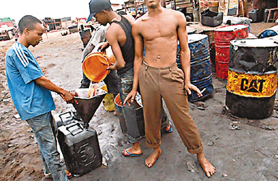 尼日利亞拉各斯的民眾公然在街頭買賣黑市汽油。