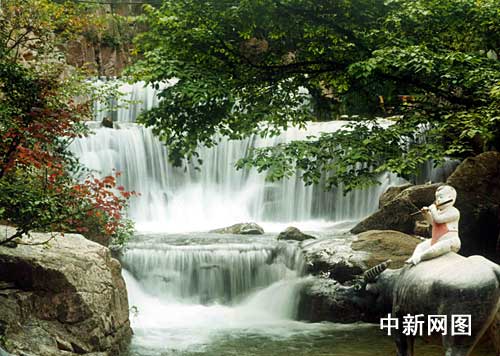鴛鴦瀑:興地村王如貴家貧無子,有女名引弟至孝。是年如貴患病而亡,妻傷悲過度,臥病在床。女引弟上綿山采藥時,忽遇一惡狼追趕,被一男子奮身相救。引弟謝道:“承蒙公子相救,敢問家住何方,姓什名誰?男子答道:吾之家境,姑娘日后便知,現在采藥要緊。”言畢便幫姑娘采藥。日子一久,兩人便產生了愛慕之情。是月望日,那男子又幫引弟在此采藥,二人纏綿難舍,不覺月上樹梢。忽有一老人從溝內走出說:“你二人前世姻緣未滿,現世當為鴛鴦相伴。何不就此月明之下,讓老夫做媒,永結連里。”二人聞言,知是月下老人,連忙拜謝,老人隱沒無蹤。從此二人便結為夫妻。不知過了多久,這里便出現了一雙鴛鴦。后凡有青年男女上去一坐,便可喜結良緣,終生相伴。