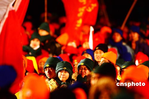 12月31日晚,“喜迎奧運 祝福北京”大型主題活動在中華世紀壇舉辦,多位全球華人熟悉的嘉賓在零點時刻為北京敲響二00八的新年鐘聲,宣告北京正式跨入奧運年。千里之外的香港時代廣場迎新年活動通過衛星與北京連線互動,共同慶祝奧運年的到來。中新社發 鄭雄增 攝