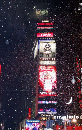 來自世界各地的游客在紐約時代廣場迎接新年到來。中新社發 鄧悅 攝