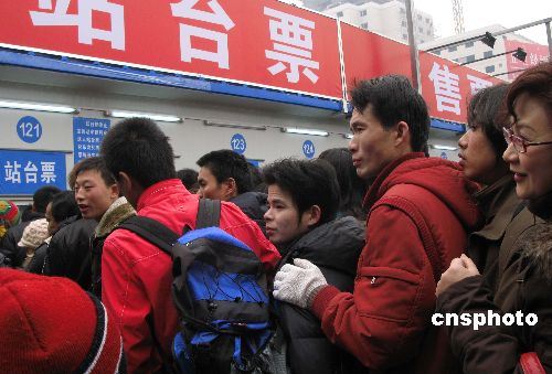 2008年1月19日周六,離春節(jié)還有十余天,大批在京就讀的大學(xué)生、打工者,在春運(yùn)高峰到來前先期買列車票、站臺票回家鄉(xiāng)過春節(jié)。中新社發(fā) 鄒憲 攝
